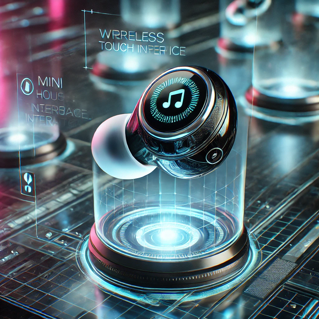 투명한 터치 인터페이스와 홀로그램 디스플레이를 강조한 미래의 무선이어폰